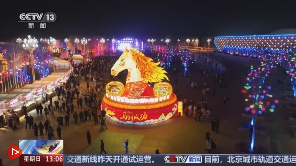 走进元宵会场,五个主题灯光区、百余个大型主题灯光组亮相。 13米高的“天马腾霄”灯光组蔚为壮观。通过灯光建模现场还原,结合数字孪生技术打造的精准光影效果,表现出流畅灵动的姿态,为参观者营造身临其境的体验。