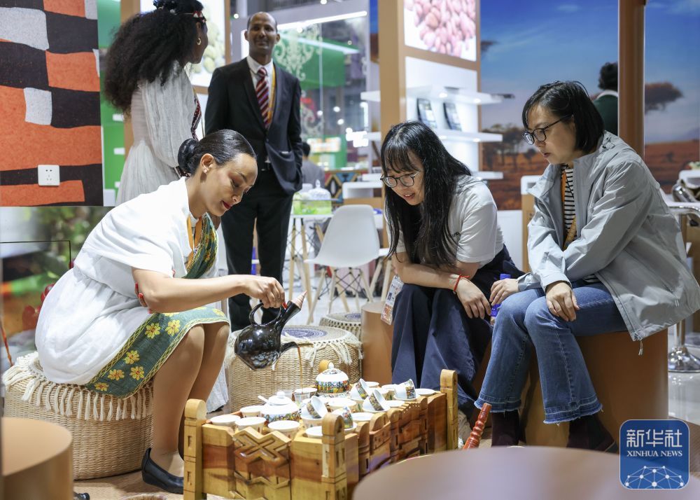 ^ 11月7日,人们在第八届中国国际进口博览会埃塞俄比亚馆品尝咖啡。新华社记者 孟成光 供图。