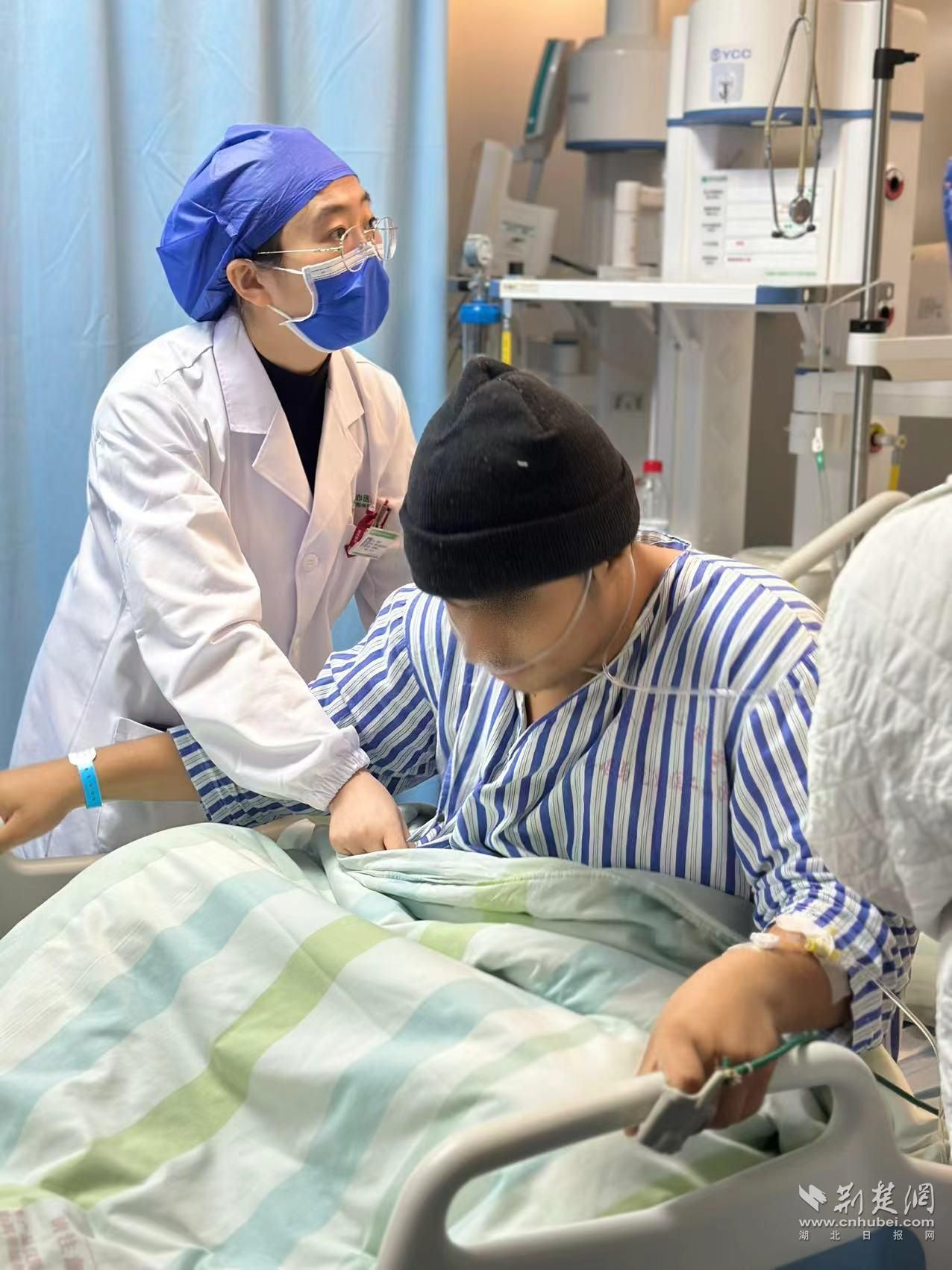 12月12日,在荆州市中心医院呼吸与重症医学科病房里,来自也门的留学生肖飞(化名)轻松地站起来,正在与医护人员交谈。当天的CT检查显示,肺部的液体已基本被吸收,肺部积聚情况良好。就在一周前,这位年轻人因突发重病,面临生命危险。